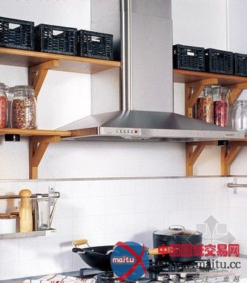 因为空间上的限定,在知足根基的利勤奋效后,小厨房的储物空间常常会显得比较严峻,因此须要最大年夜限度地发掘可利用空间,扩展年夜空间感,尽大概制止死角。抽油烟机上方的空间很等闲被忘记,但随机应变地增加可储物的隔板后,也能办理小厨房的收纳问题。