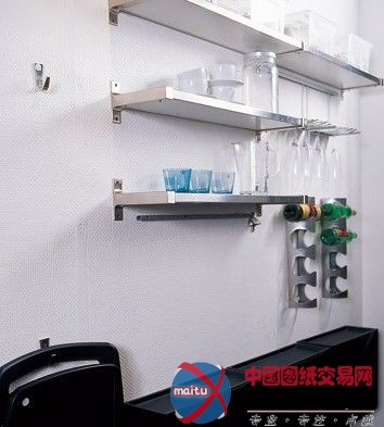 厨房的恰当地位装一些墙面支架,乃至可以把微波炉这类大年夜件转移过往,台面就不再拥堵了。不外,这类功效性极强的墙面搁板或支架必然要买质量好、承重才能强的。别的厨房内的搁架和搁板可以有用地将繁多的烹调调味品收纳。