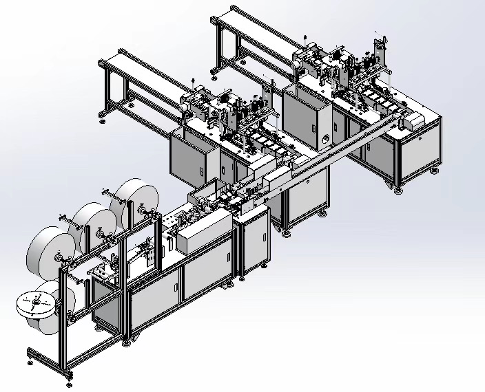 全自动一拖二平面口罩机量产图纸,包含3D工程图纸,2D零件加工图,标准件BOM表