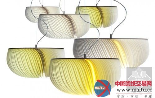 这盏由许多扇形组合而成的吊灯最大年夜的亮点在于其材质。这些扇形都是由FSC纸制而成,这些原材料起码有50%是来自再利用的。层层叠叠如鱼鳍一样平常的计划可让光芒畅通更通亮顺畅。