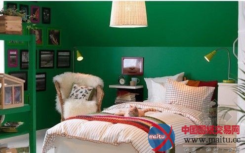 这是一款特别非常符合“乐活”主题的寝室:整面绿意盈盈的墙壁,好似天然界中朝气勃勃的绿草。收纳架和墙角上的绿色植物,更夸大年夜了人与天然的调和之美。吊灯也是选用了最环保的藤艺灯罩,温润的灯光给人身心的舒服感。