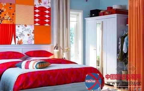雄厚跳跃的色采,让空间充满了年青畅旺的赌气。宜家家居是特别非常夸大年夜用软装潢来搭配出视觉结果的。在这个寝室中,床、衣柜等家具都是白色的,而地毯、壁画、床品等软装潢用品都采取了同为橙色系的色采,如许全部空间的色彩当然美丽,却不显混乱