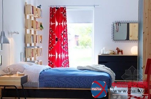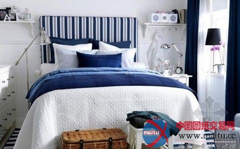 在地中海气焰愈来愈流行之时,宜家适时的把地中海气焰的某些元素融进到宜家的北欧简约空间中来。寝室中采取了地中海式的蓝白色调,从床头板、床品到沙发套、窗帘等布艺 ,但又舍弃了地中海气焰圆弧线条计划,而保留了简约气焰直线条的简练,从而显得更加清爽怡然。让人身临此中,无风也清冷。