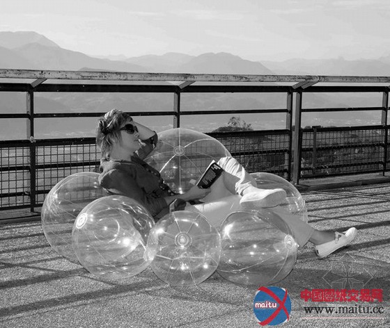 计划师Marie Galoyer或许对那些漂泊在空中的泡泡情有独钟,计划了一款泡泡沙发,它的布局极其简略合用,将大年夜小不一的透明泡泡经由过程粘合组装在了一起,人们恰好可以恬逸的躺在上面,就犹如身处云端之上,重量轻的长处,可让人们带着走,随走随躺。