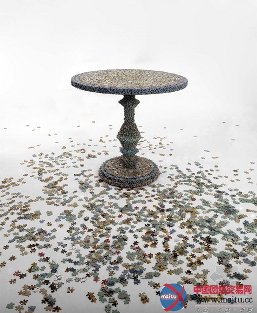 英国的艺术家Rupert McKe破钞数百小时,将数以千计的拼图件构成这张桌子,名为missing piece。这个作品切磋了以不完整构成新的完整(情势和功效)。