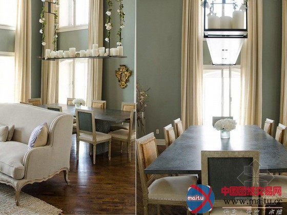客堂中,漆上薄荷绿色彩的墙壁带来村落故乡的热和蔼味,古玩的家具为这个空间增加无限的浪漫感触感染,团体都带着一种纯净而优雅的质感。