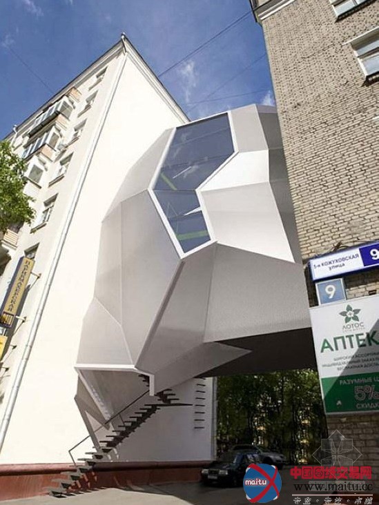 来自Za Bor Architects的一个创意,Parasite Office,位于莫斯科,我们可以简略地将之懂得为“挂”在两栋大年夜楼间的房子,计划师觉得,如许的“外挂”能更有用地利用空间,并且也不影响两边大年夜楼和大年夜楼间途径的本来功效——我说,你乐意卖掉落本身的房子到如许的房子中栖身么